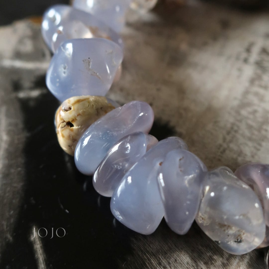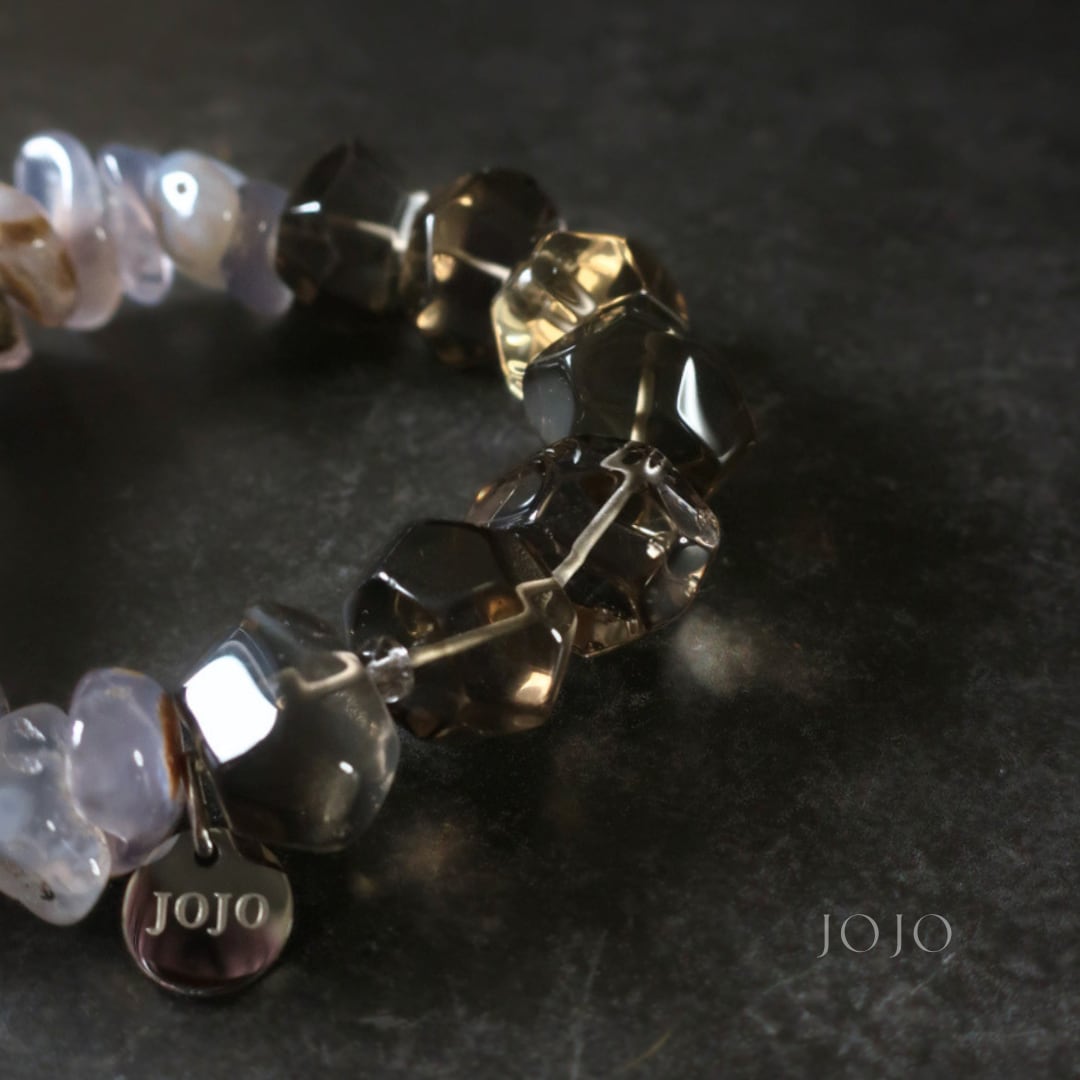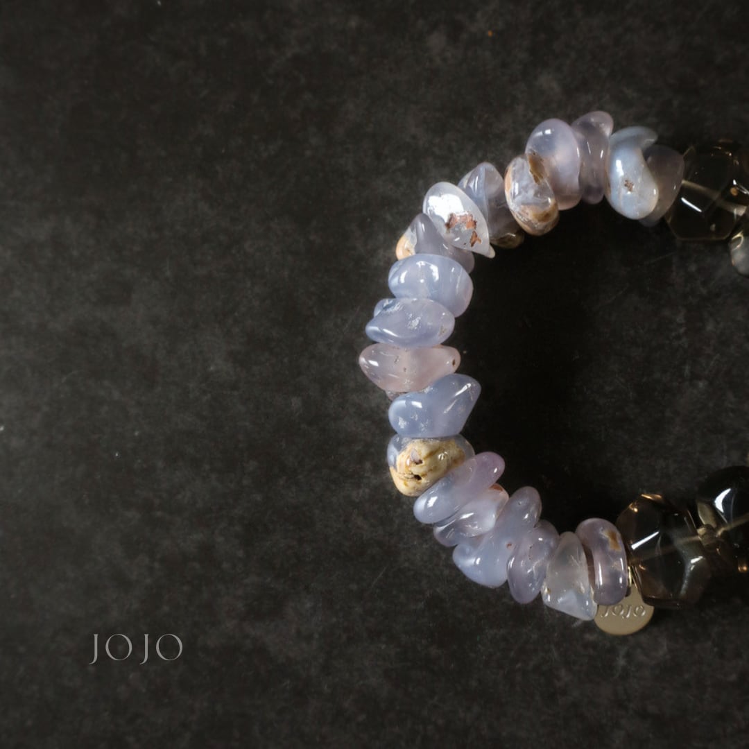 bicolor bracelet «ブルーカルセドニー × スモーキークォーツ»