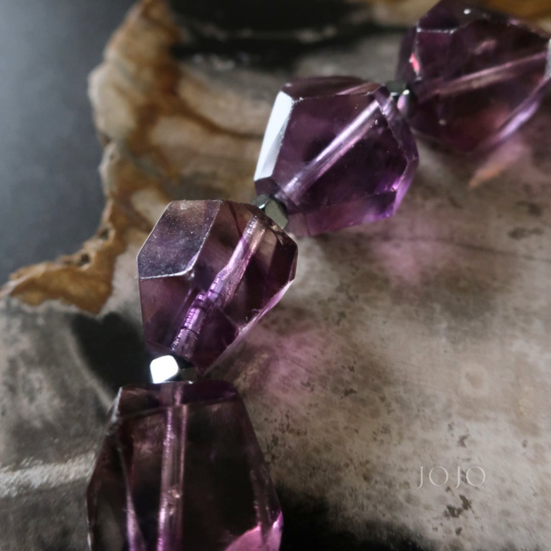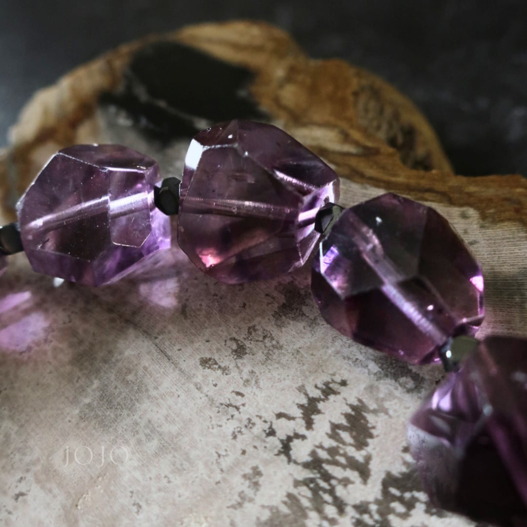 粒ごとに異なる形や透明度、ファントムによる紫の濃淡、天然ならではのゆらぎが重なり、奥行きのある表情を楽しめます。