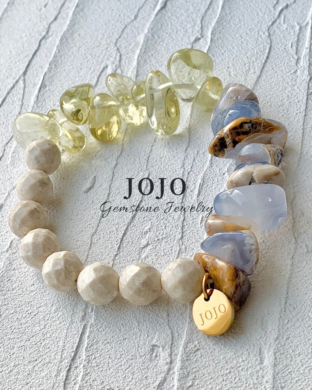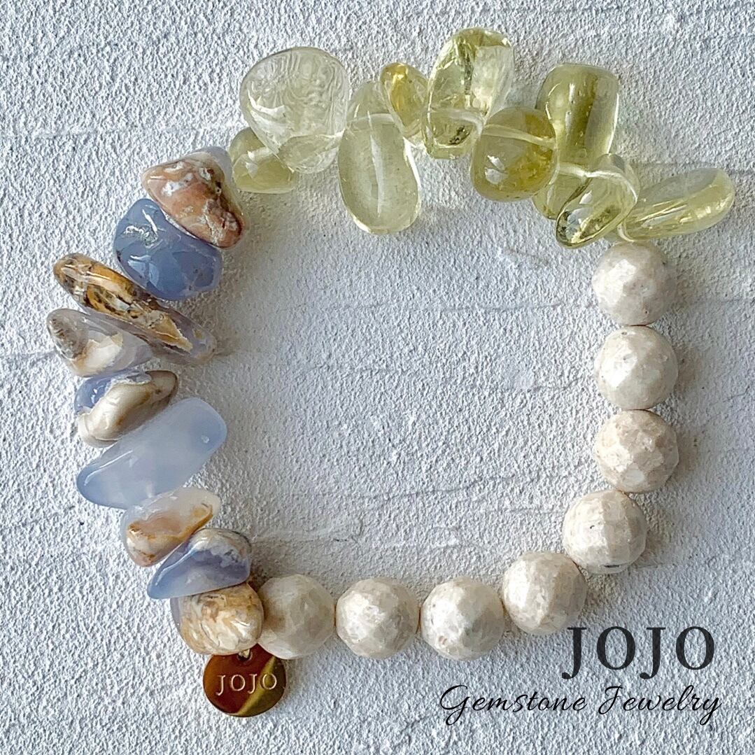 multicolor bracelet «母岩付きブルーカルセドニー × レモンクォーツ × リバーストーン»