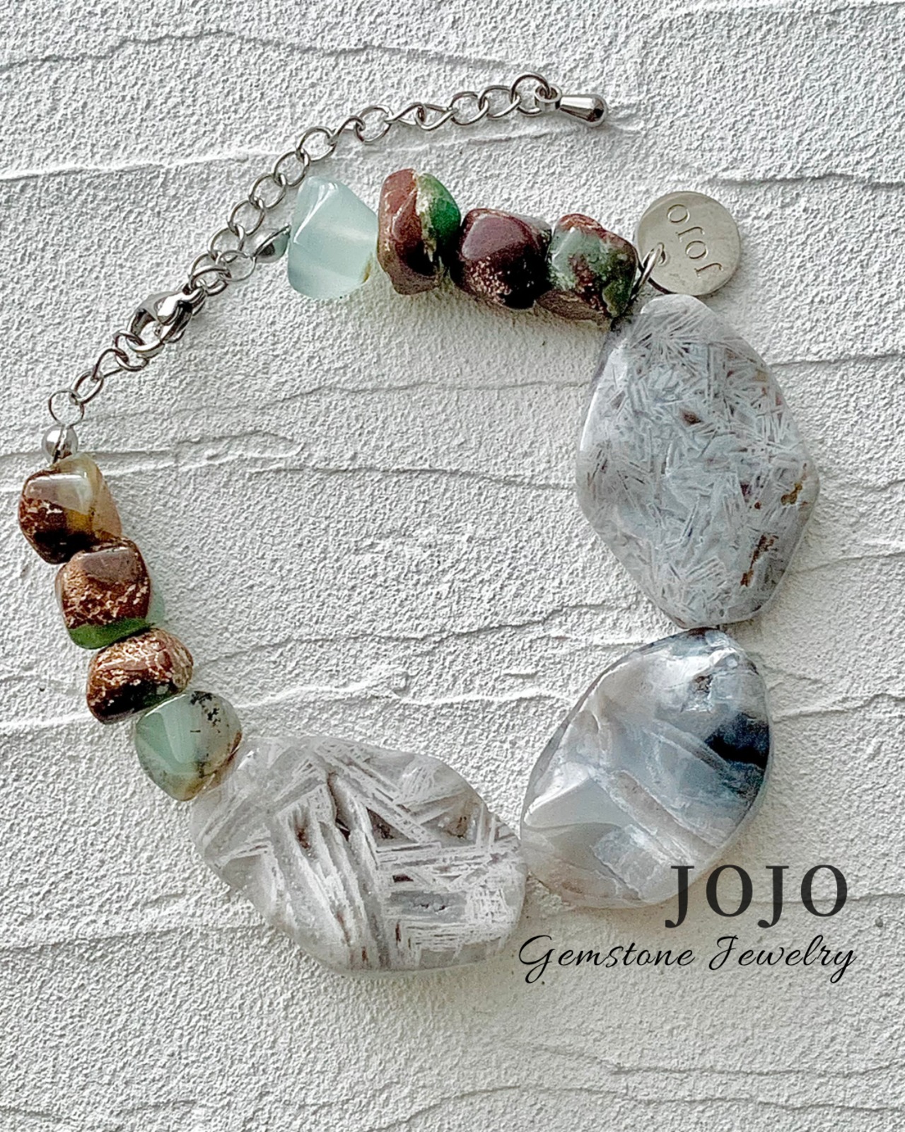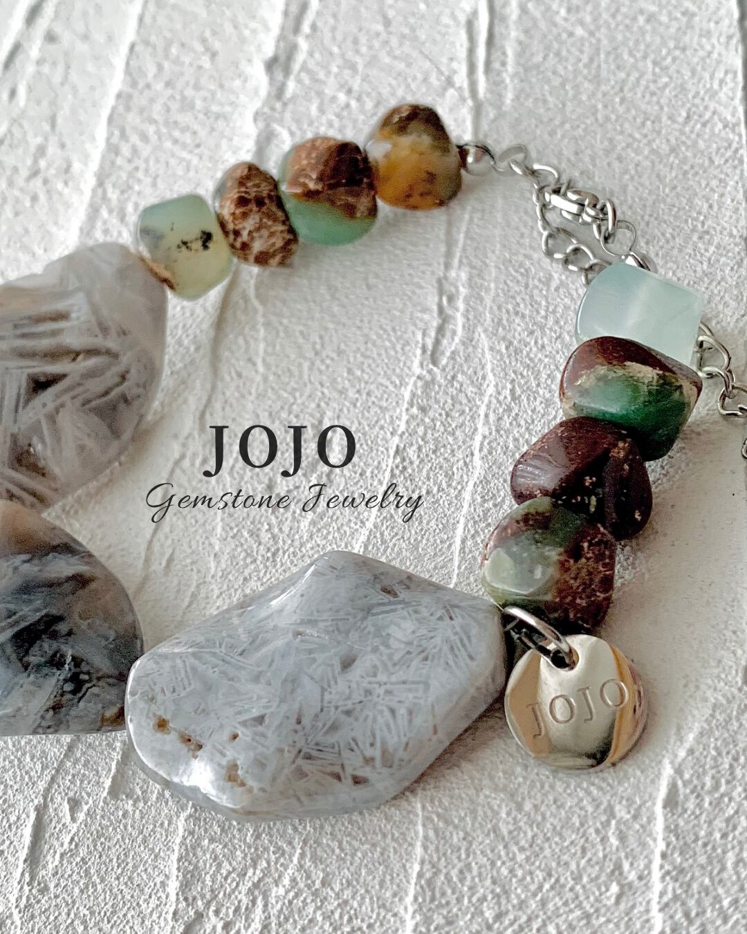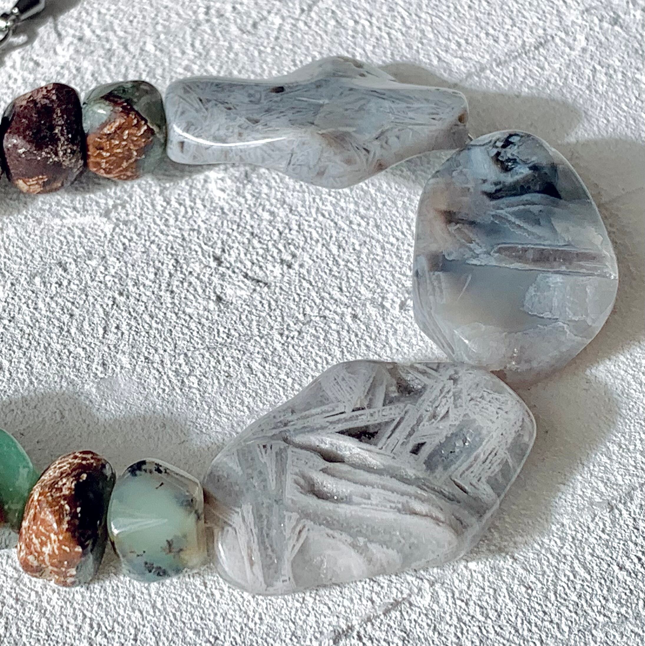 bicolor bracelet «バンブーリーフアゲート × クリソプレーズ»