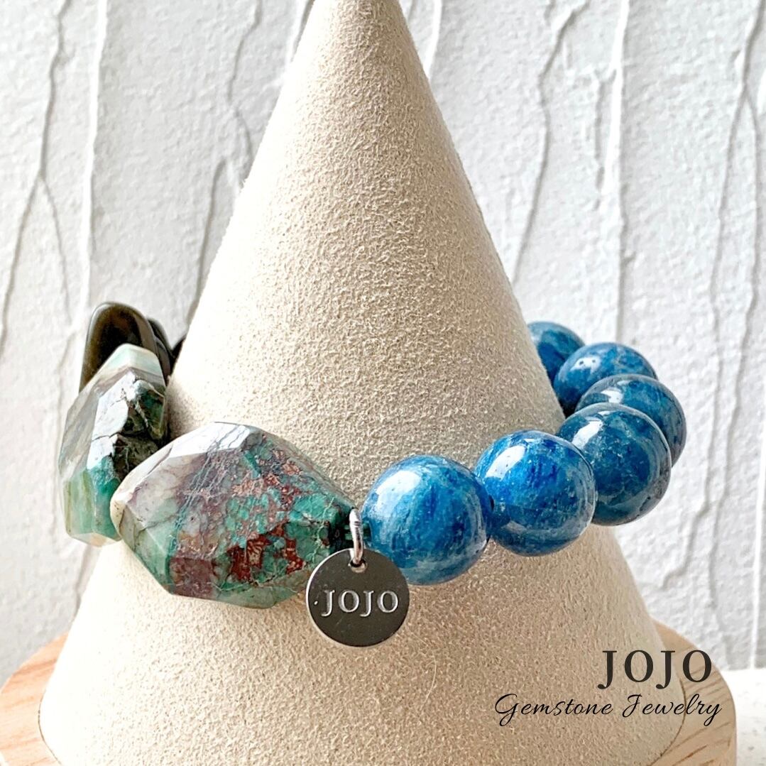 【再販】multicolor bracelet «ブルーアパタイト × クリソコラインクォーツ × ゴールデンオブシディアン»