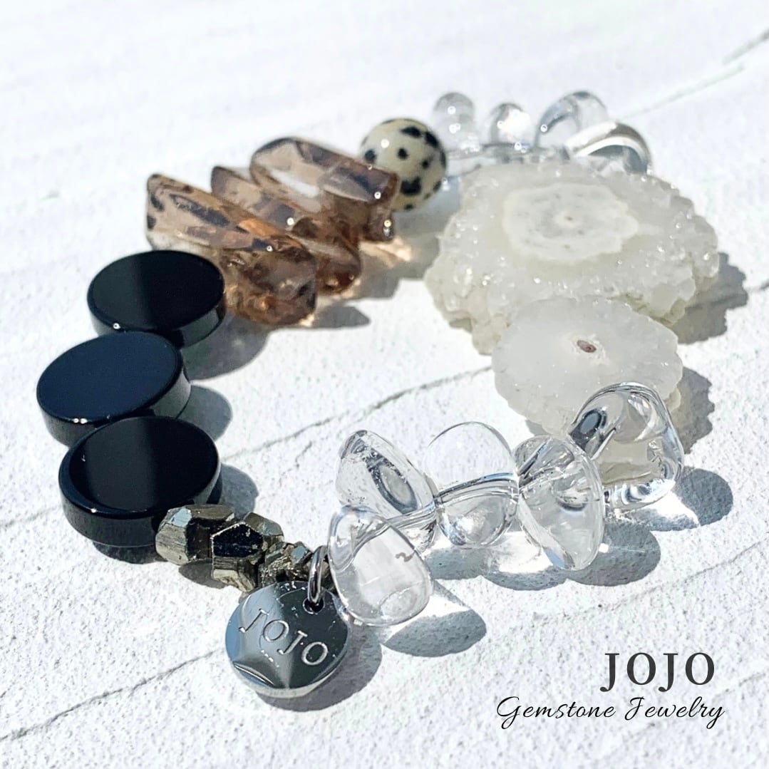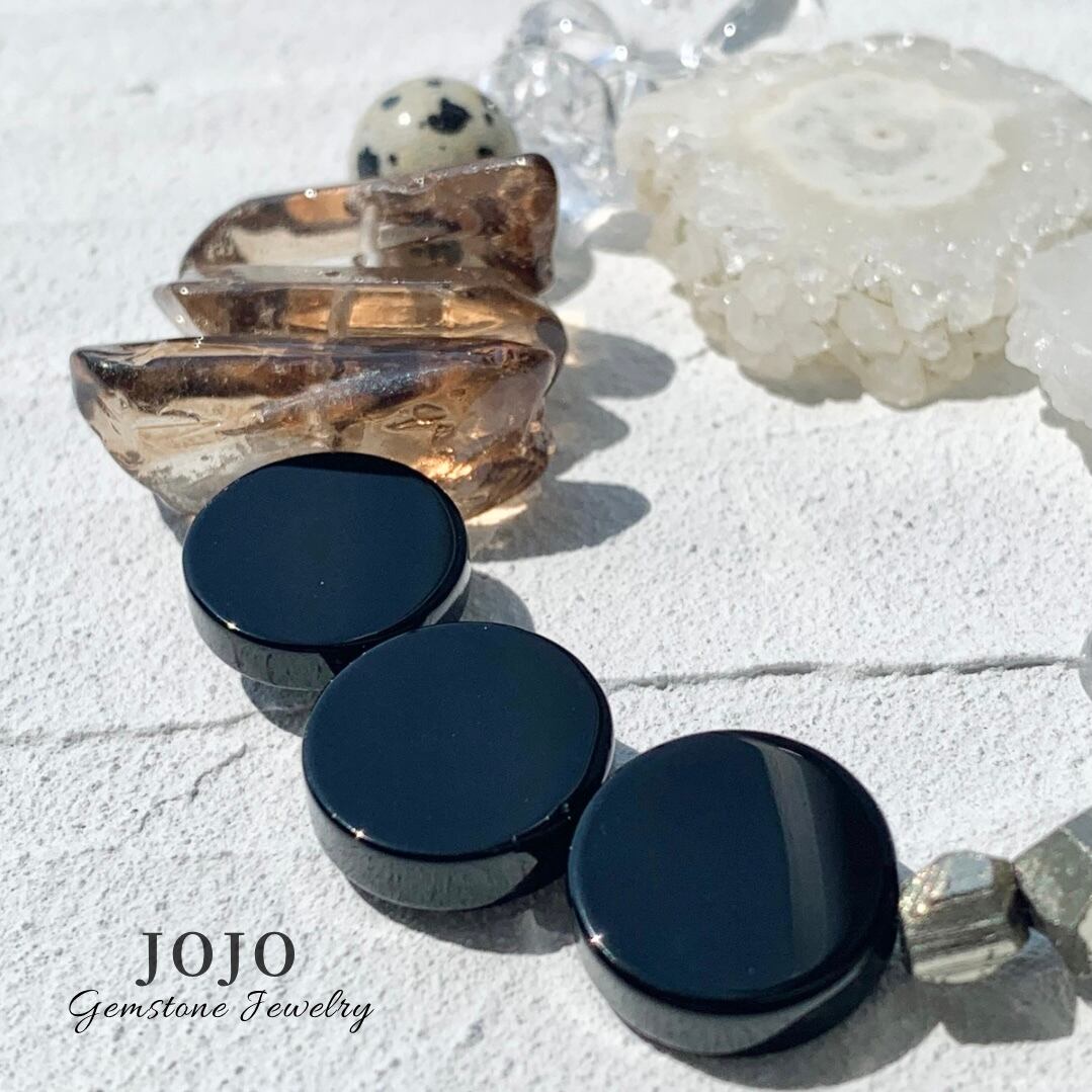 multistone bracelet «ソーラークォーツ × オニキス × クリスタル × スモーキークォーツ × パイライト × ダルメシアンジャスパー»