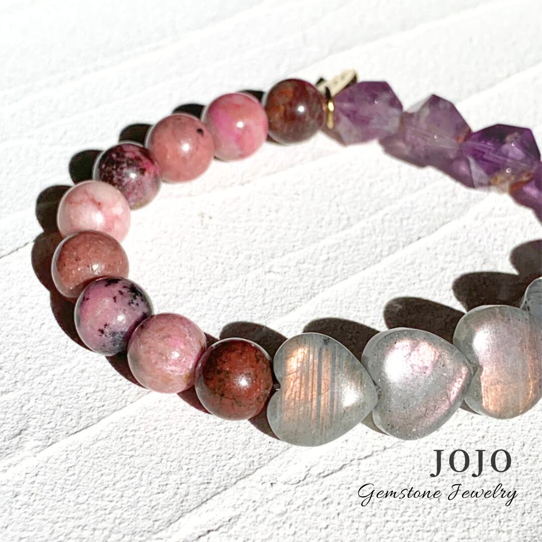 multicolor bracelet «ピンクスギライト × ラブラドライト × カコクセナイトインアメジスト»