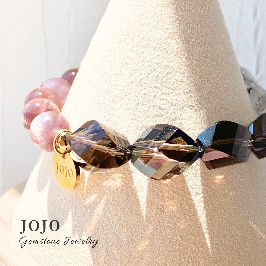 【再販】multicolor bracelet «ピンクマイカ × スモーキークォーツ × ダブルポイントクリスタル»