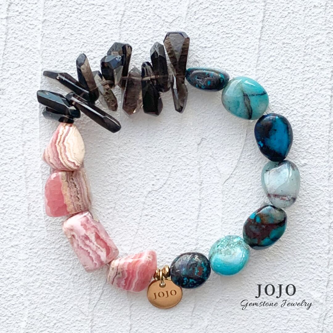 multicolor bracelet «インカローズ × アズライトクリソコラ × スモーキークォーツ»