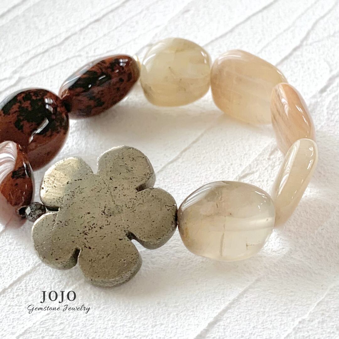 multicolor bracelet «パイライト × ムーンストーン × マホガニーオブシディアン»