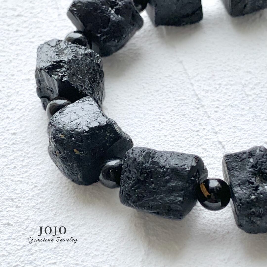 原石を割っただけといったような形状のブラックトルマリンは、まるで採掘されたままのような、天然に非常に近いワイルド雰囲気。