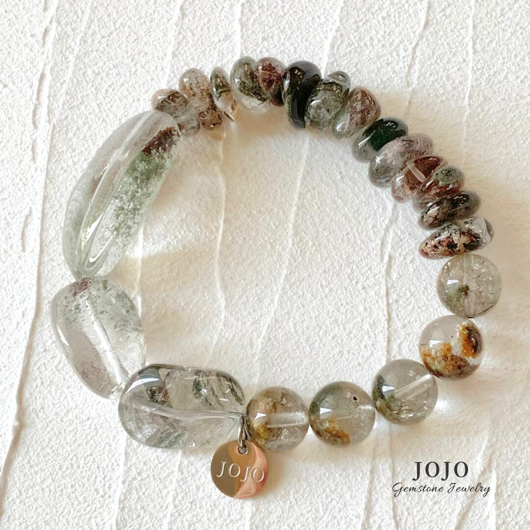 その美しさを際立たせる大粒のタンブルに、クォーツ部分の透明感が美しいミニタンブルとラウンドを合わせてお仕立てした贅沢なブレスレットです。