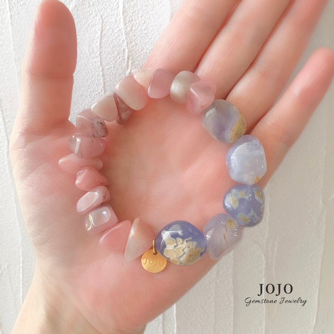 bicolor bracelet «グァバクォーツ × 母岩付きブルーカルセドニー»