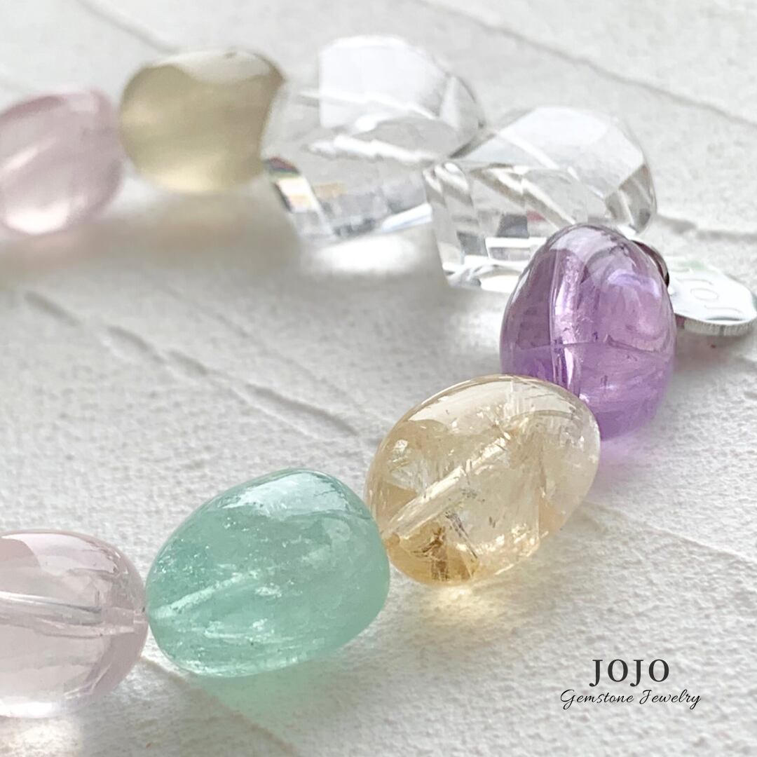 【再販】multicolor bracelet «アメジスト × シトリン × ローズクォーツ × レモンクォーツ × フローライト × クリスタル»