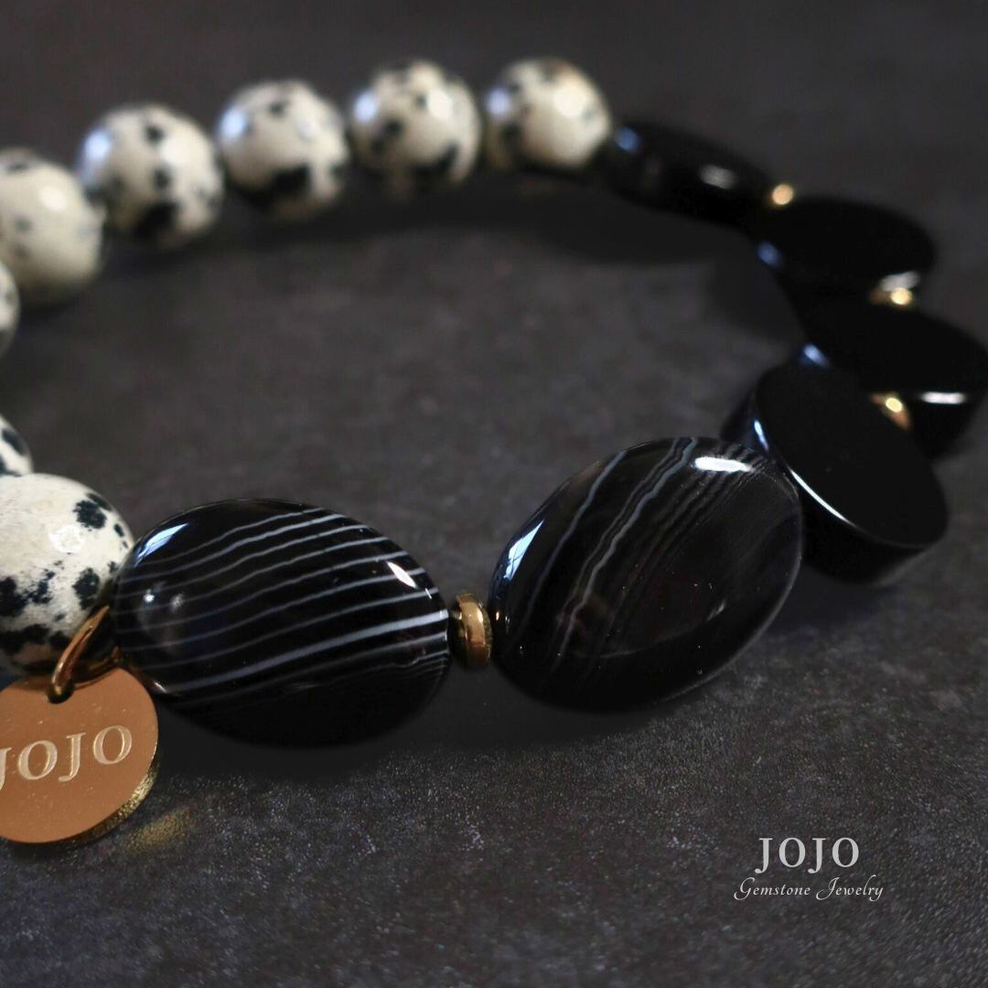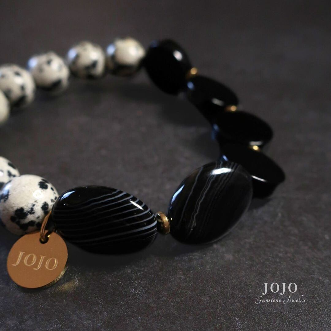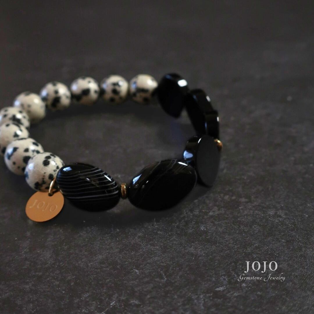 【再販】one color bracelet «ダルメシアンジャスパー × ブラックオニキス × ストライプアゲート»