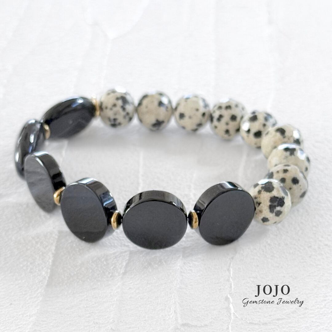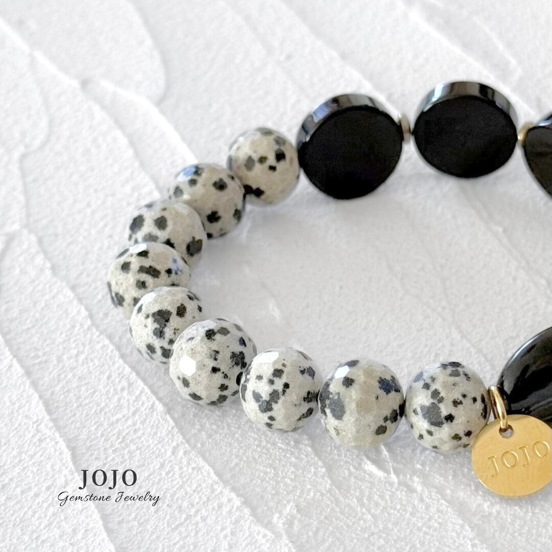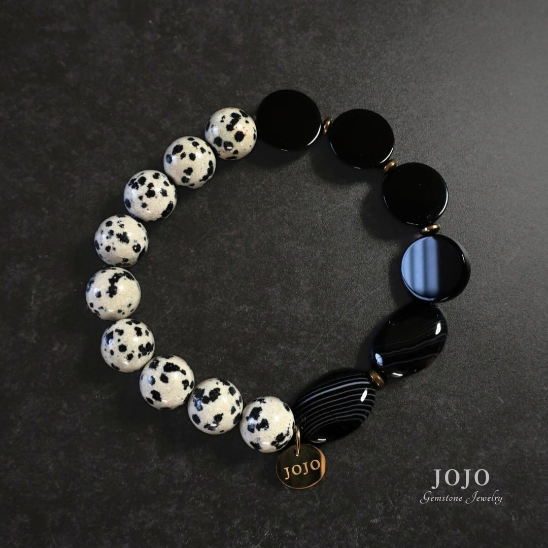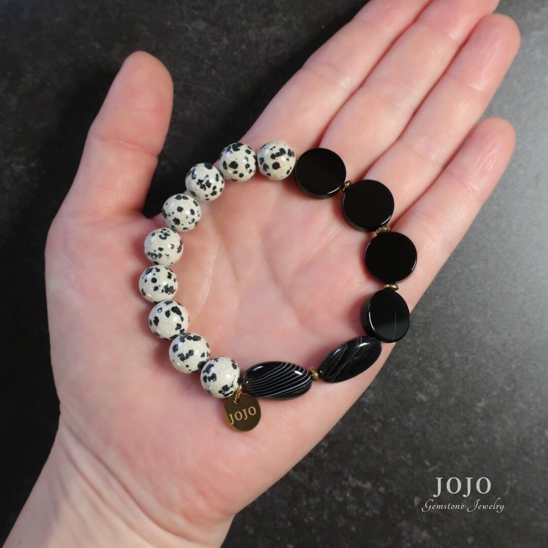 【再販】one color bracelet «ダルメシアンジャスパー × ブラックオニキス × ストライプアゲート»
