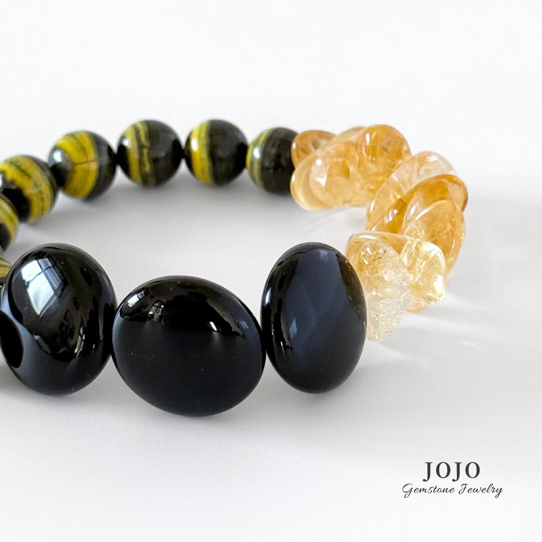 bicolor bracelet «バンブルビージャスパー × シトリン × オニキス»